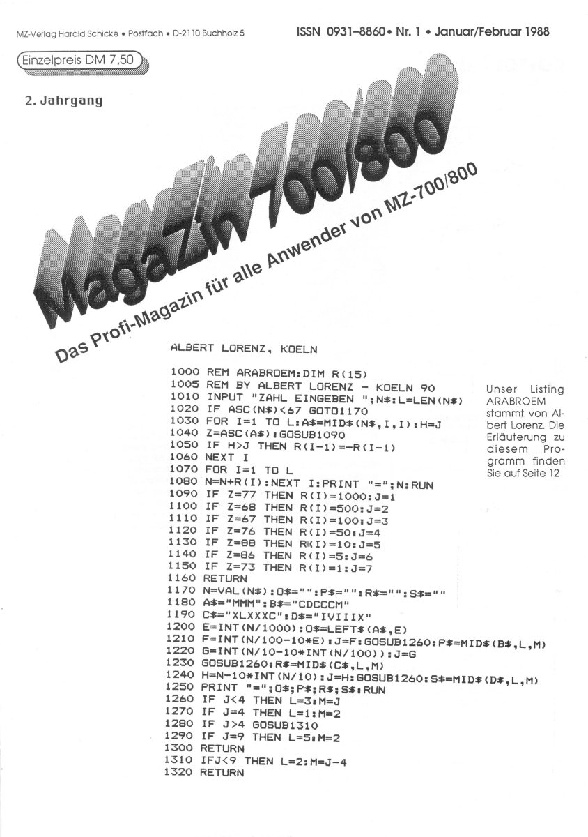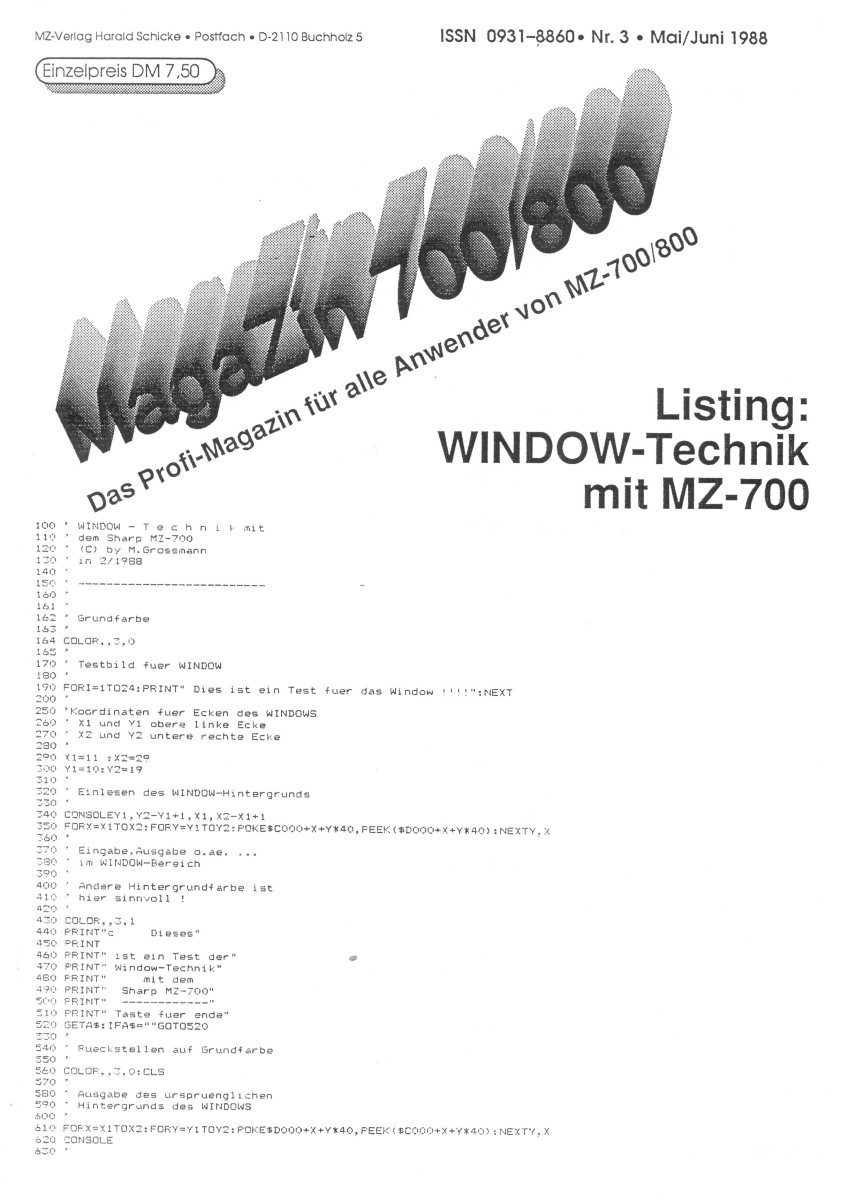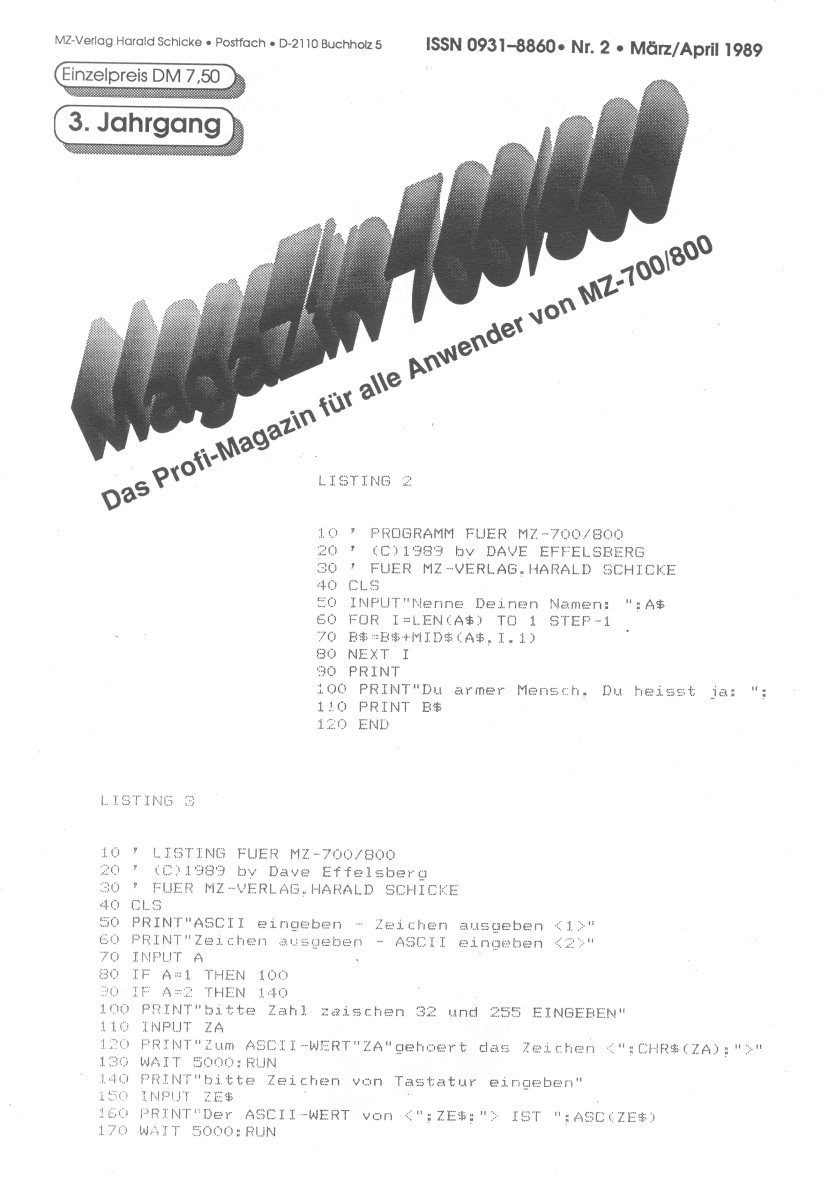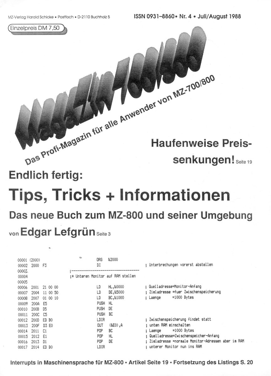 The first edition of the German "Magazine MZ-700 / 800" was