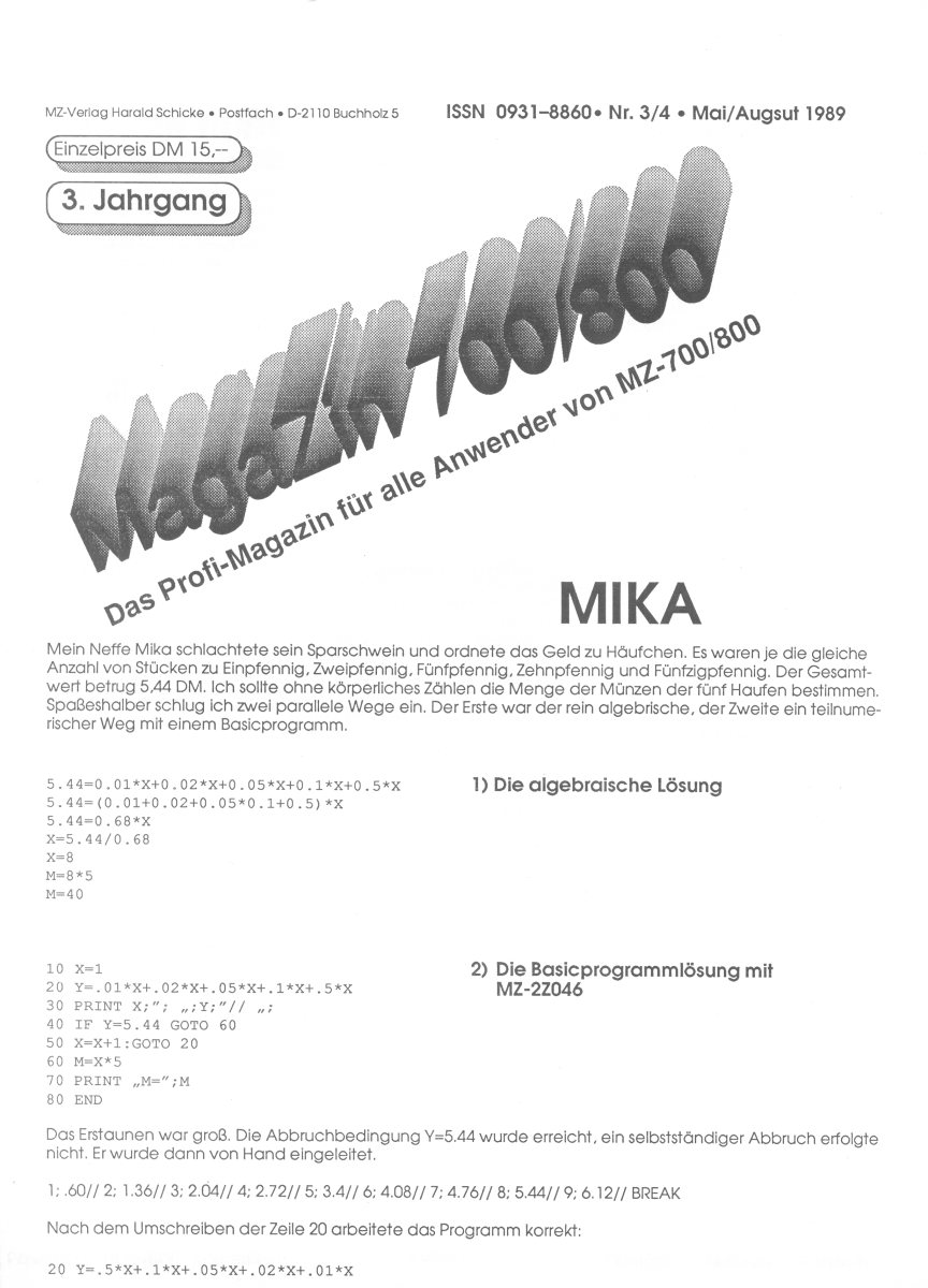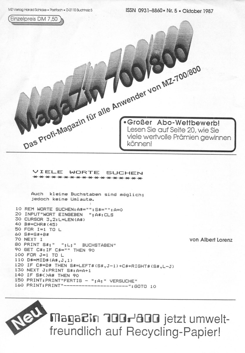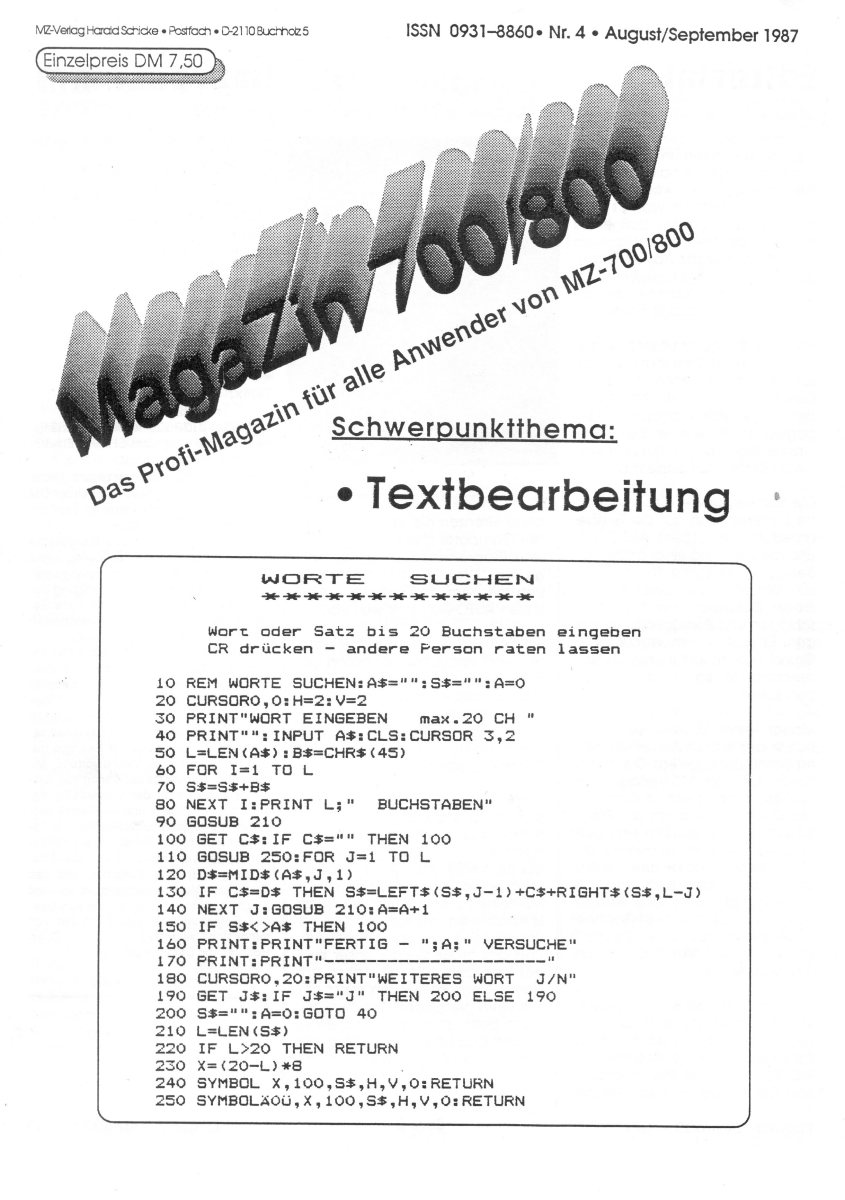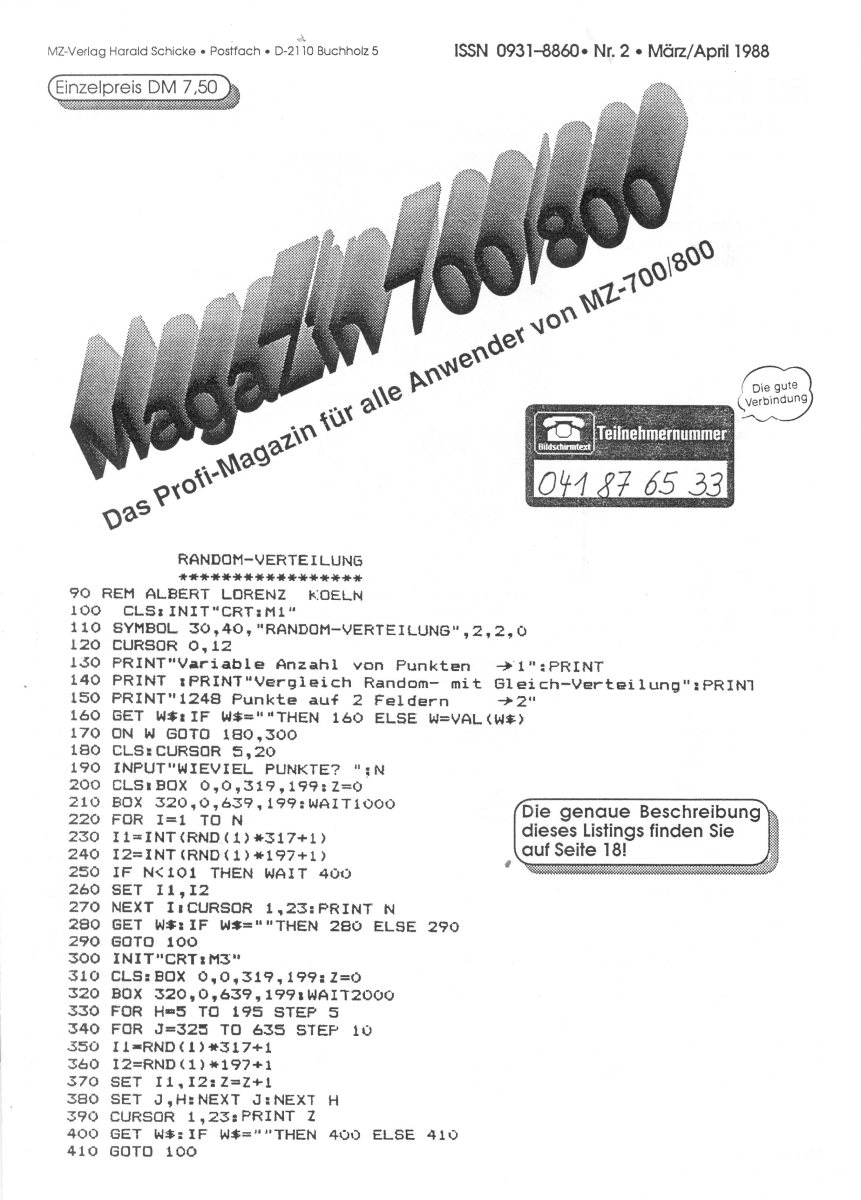 The first edition of the German "Magazine MZ-700 / 800" was